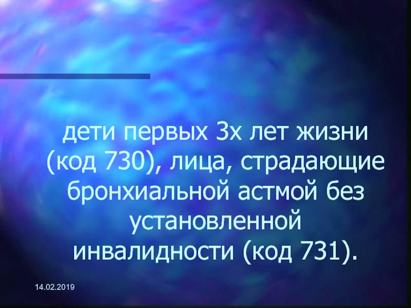 Слайд 9дети первых 3х лет жизни (код 730), лица, страдающие бронхиальной