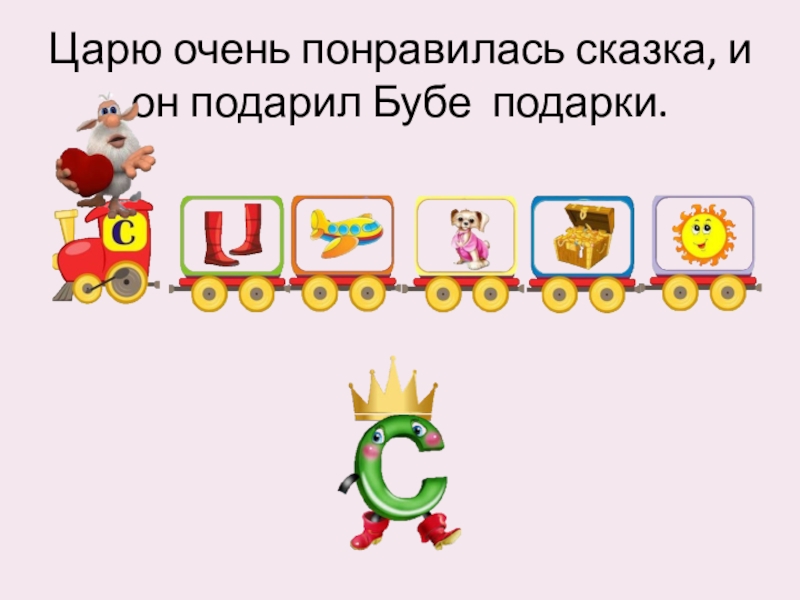 Слайд 26Царю очень понравилась сказка, и он подарил Бубе подарки.