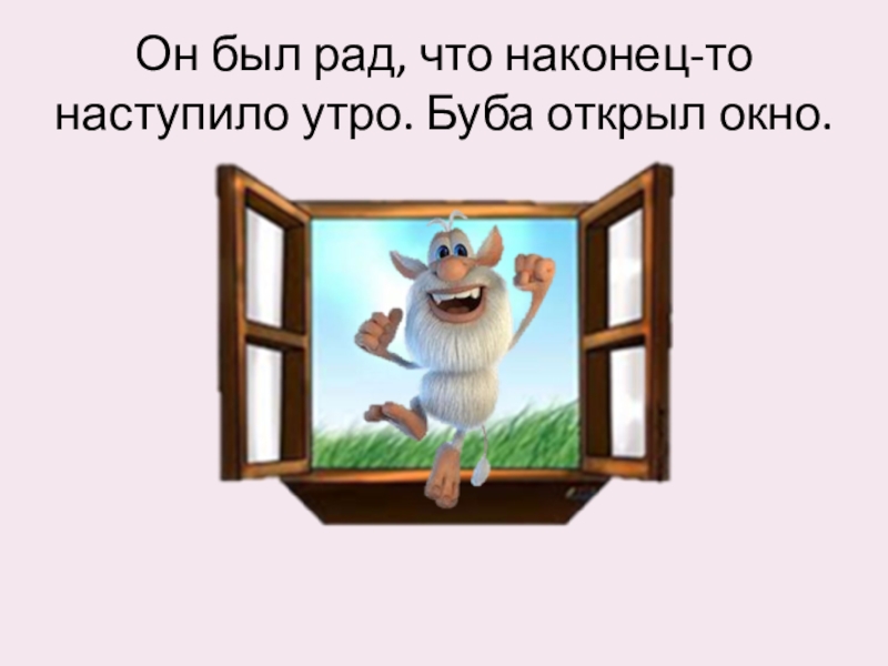 Слайд 3Он был рад, что наконец-то наступило утро. Буба открыл окно.