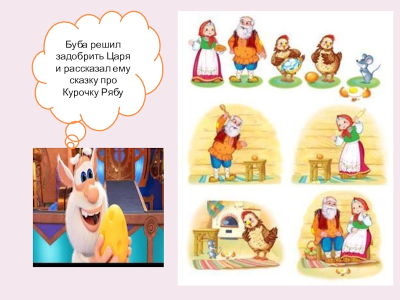 Слайд 25Буба решил задобрить Царя и рассказал ему сказку про Курочку