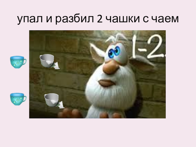 Слайд 7упал и разбил 2 чашки с чаем