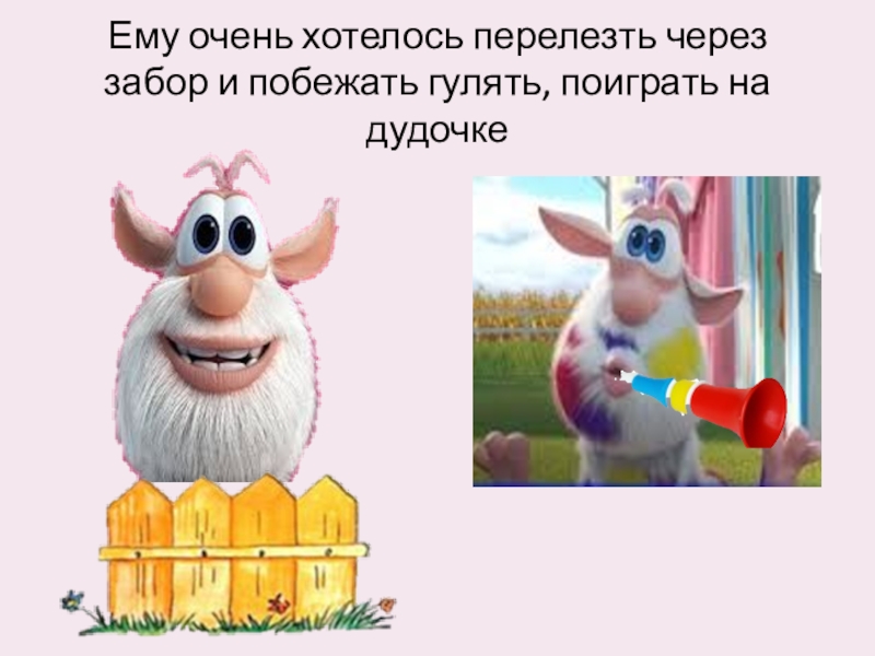 Слайд 4Ему очень хотелось перелезть через забор и побежать гулять, поиграть