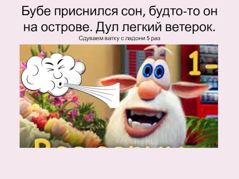 Бубе приснился сон, будто-то он на острове. Дул легкий ветерок. Сдуваем ватку с ладони 5 раз