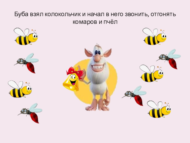Слайд 12Буба взял колокольчик и начал в него звонить, отгонять комаров