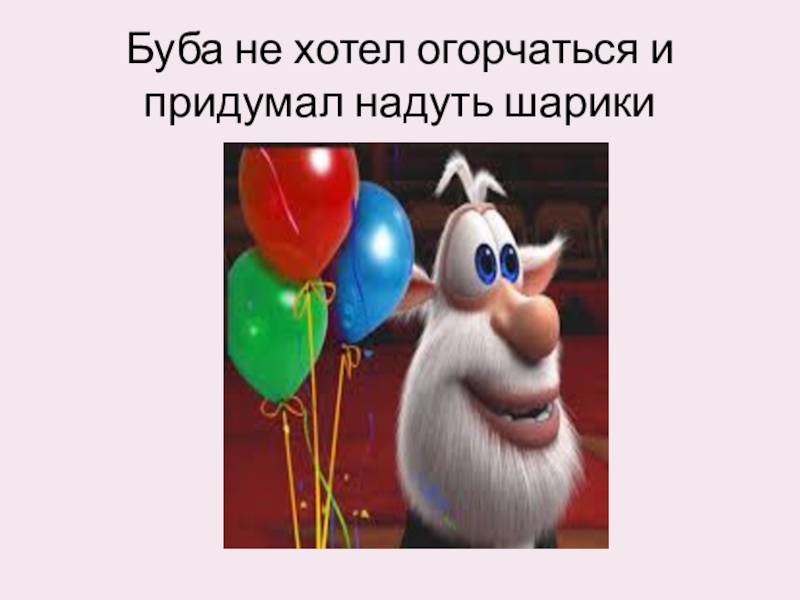 Слайд 9Буба не хотел огорчаться и придумал надуть шарики