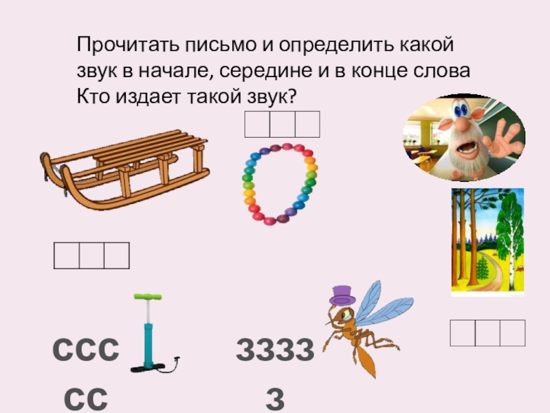 Прочитать письмо и определить какой звук в начале, середине и в конце словаКто издает такой звук?сссссззззз