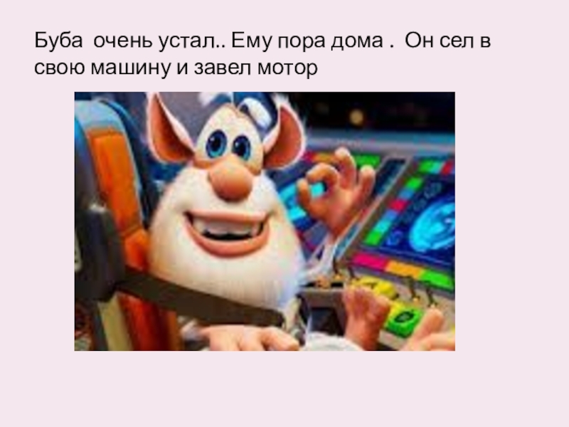 Буба очень устал.. Ему пора дома . Он сел в свою машину и завел мотор