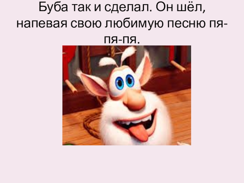 Слайд 5Буба так и сделал. Он шёл, напевая свою любимую песню