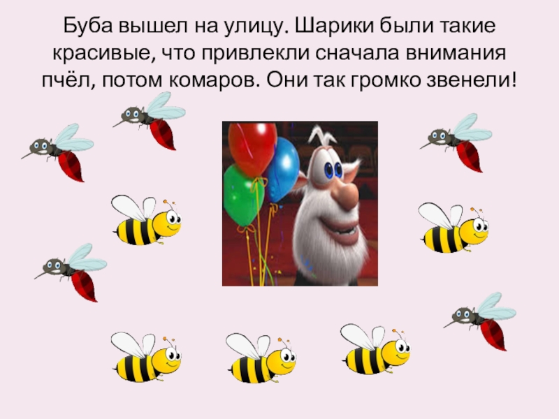 Слайд 11Буба вышел на улицу. Шарики были такие красивые, что привлекли