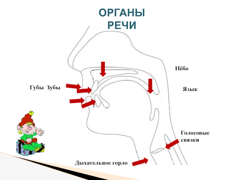 ОРГАНЫ РЕЧИГубыЗубыНёбоЯзыкДыхательное горлоГолосовые связки