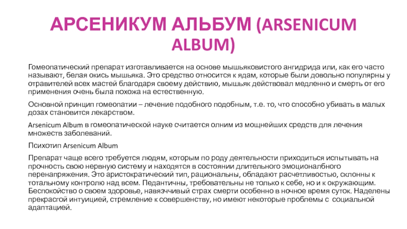 Слайд 8АРСЕНИКУМ АЛЬБУМ (ARSENICUM ALBUM)