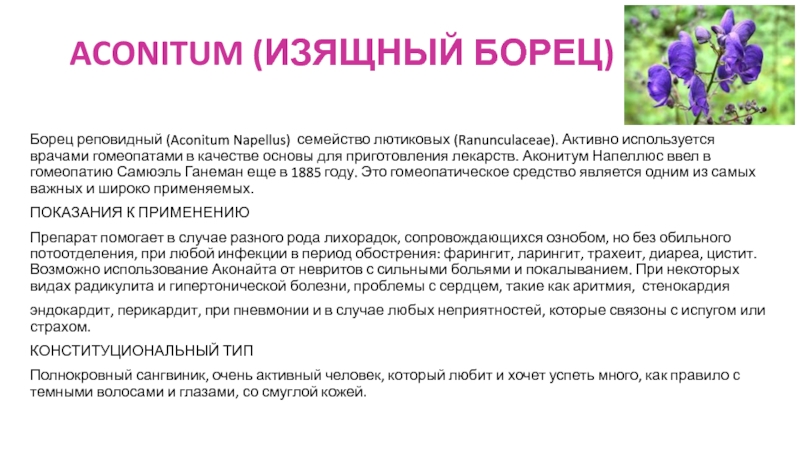 Слайд 2ACONITUM (ИЗЯЩНЫЙ БОРЕЦ)