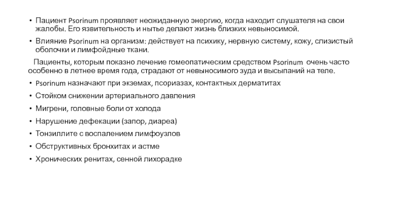 Слайд 7Пациент Psorinum проявляет неожиданную энергию, когда находит слушателя на свои