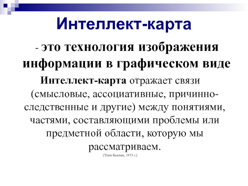 понятиями, частями, составляющими проблемы или предметной области, которую мы рассматриваем.(Тони Бьюзен, 1973 г.)