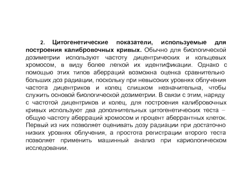 Слайд 42. Цитогенетические показатели, используемые для построения калибровочных кривых. Обычно для