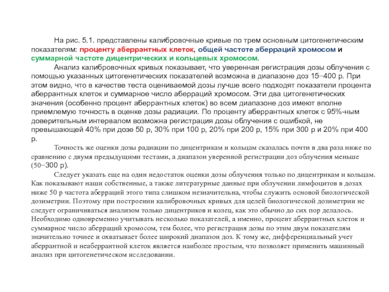 Слайд 10На рис. 5.1. представлены калибровочные кривые по трем основным цитогенетическим показателям: