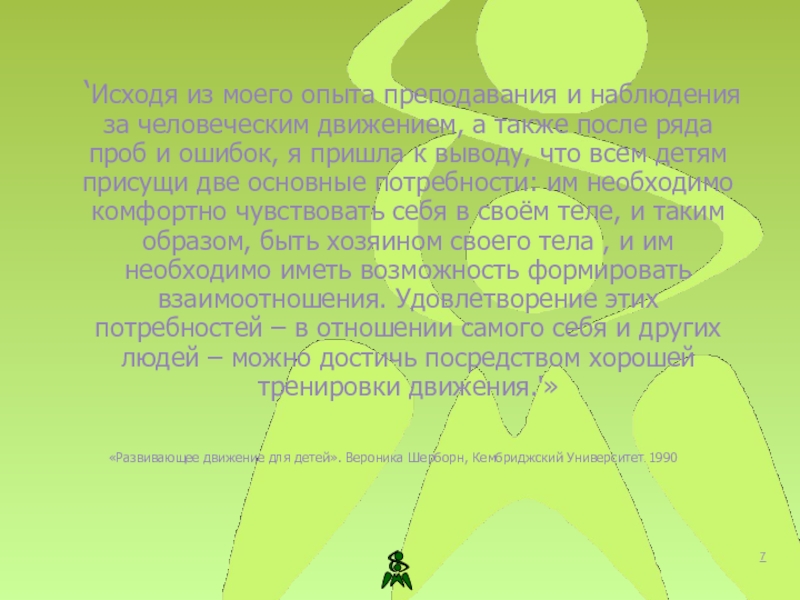 Слайд 7 ‘Исходя из моего опыта преподавания и наблюдения за человеческим движением,