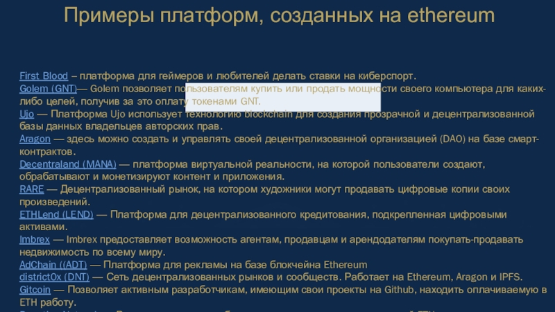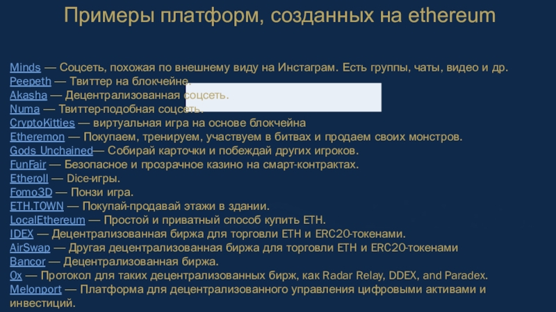 Примеры платформ, созданных на ethereum