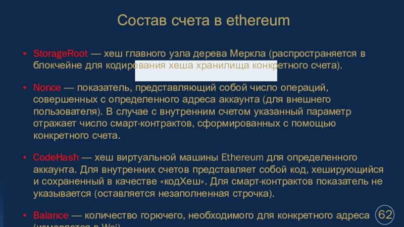 Состав счета в ethereum