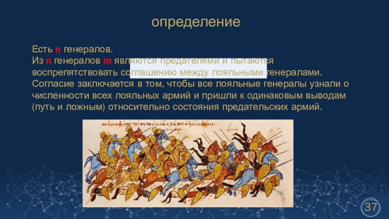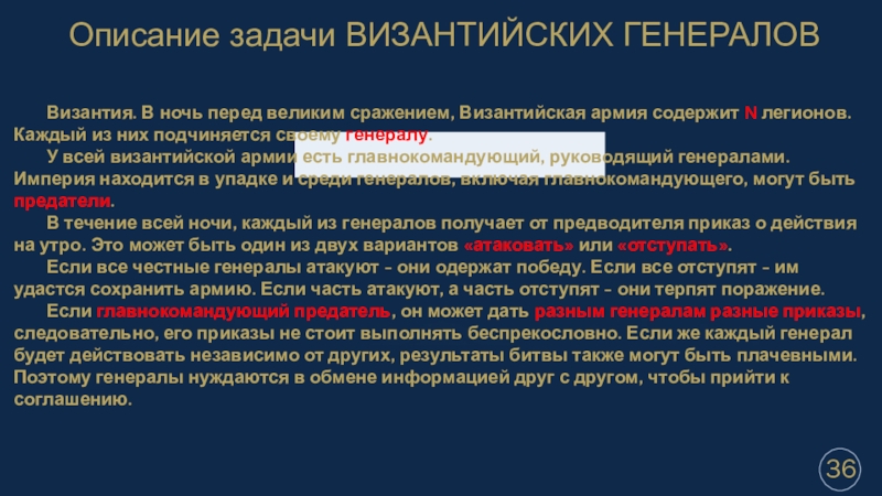 Описание задачи ВИЗАНТИЙСКИХ ГЕНЕРАЛОВ