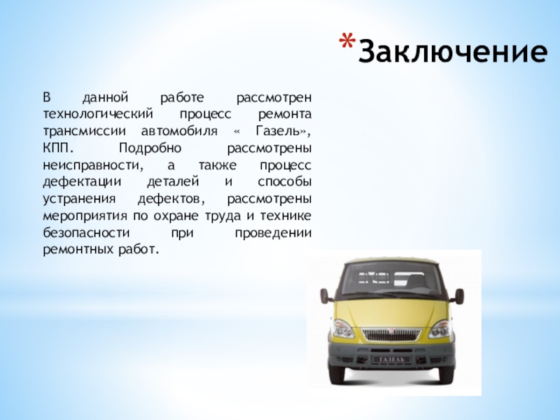 устройство трансмиссии автомобиля ГАЗ 3102 «Газель» с разработкой технологии ремонта