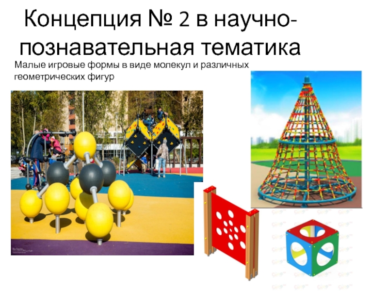 Концепция № 2 в научно-познавательная тематикаМалые игровые формы в виде молекул и различных геометрических фигур