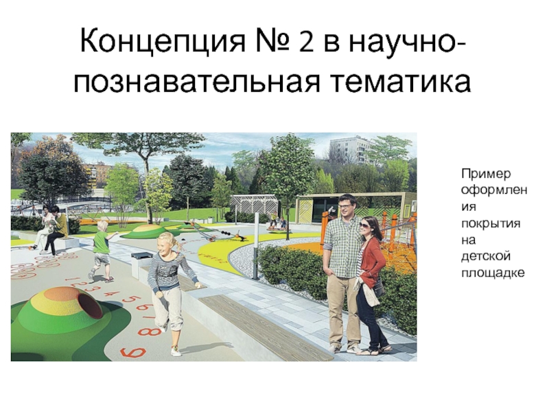 Концепция № 2 в научно-познавательная тематикаПример оформления покрытия на детской площадке