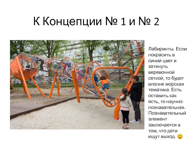 К Концепции № 1 и № 2Лабиринты. Если покрасить в синий цвет и затянуть веревочной сеткой, то