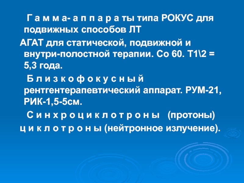 АГАТ для статической, подвижной и внутри-полостной терапии. Со 60. Т1\2 = 5,3 года.