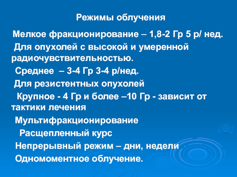 Мелкое фракционирование – 1,8-2 Гр 5 р/