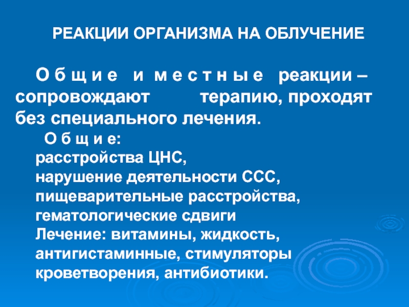 Слайд 21РЕАКЦИИ ОРГАНИЗМА НА ОБЛУЧЕНИЕ