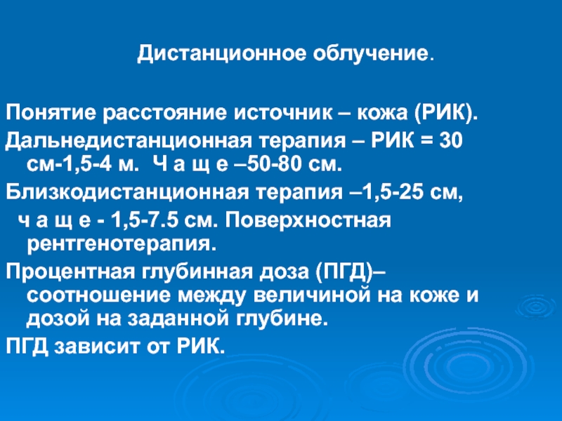 Используют дистанционную терапию при глубоко расположенных очагах (рентгентерапевтические установки)