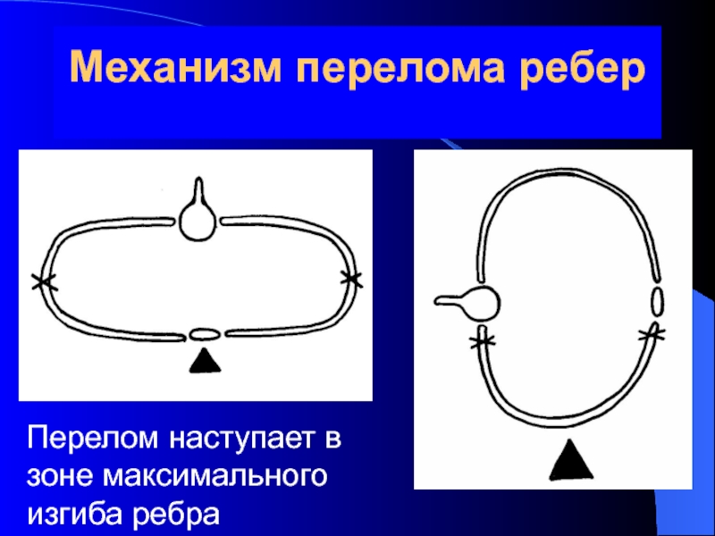 Механизм перелома ребер Перелом наступает в зоне максимального изгиба ребра