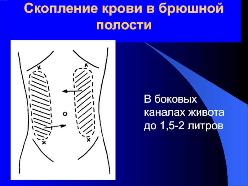 Скопление крови в брюшной полости В боковых каналах живота до 1,5-2 литров