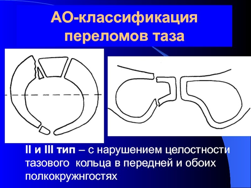 АО-классификация переломов таза II и III тип – c нарушением целостности