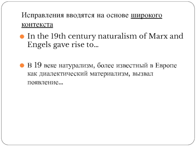 Слайд 13Исправления вводятся на основе широкого контекста