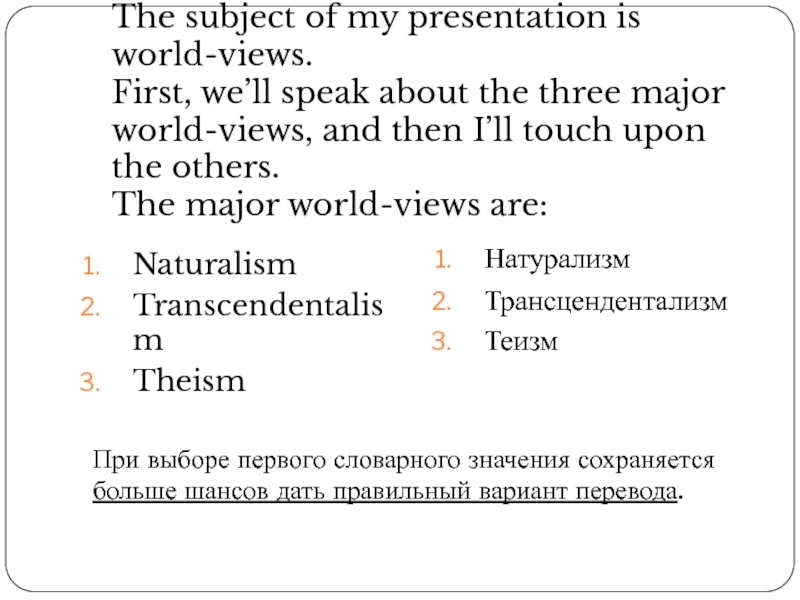 Слайд 12The subject of my presentation is world-views.