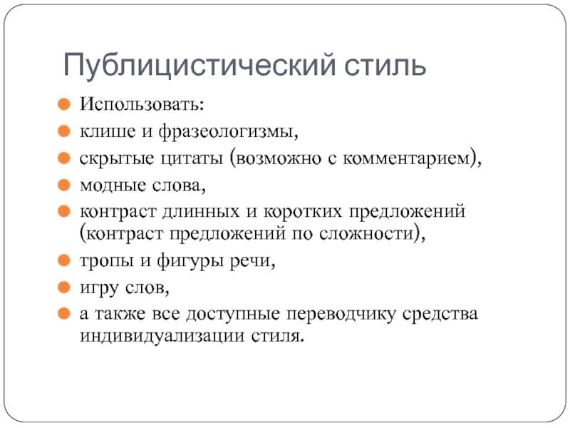 а также все доступные переводчику средства индивидуализации стиля.