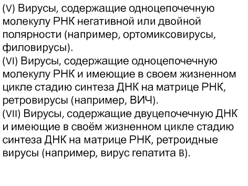 Слайд 11(V) Вирусы, содержащие одноцепочечную молекулу РНК негативной или двойной полярности