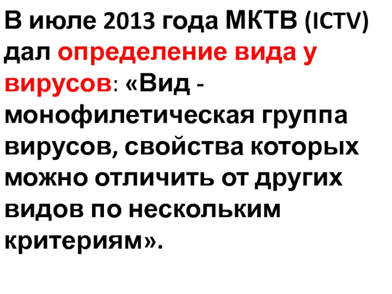 Слайд 6В июле 2013 года МКТВ (ICTV) дал определение вида у