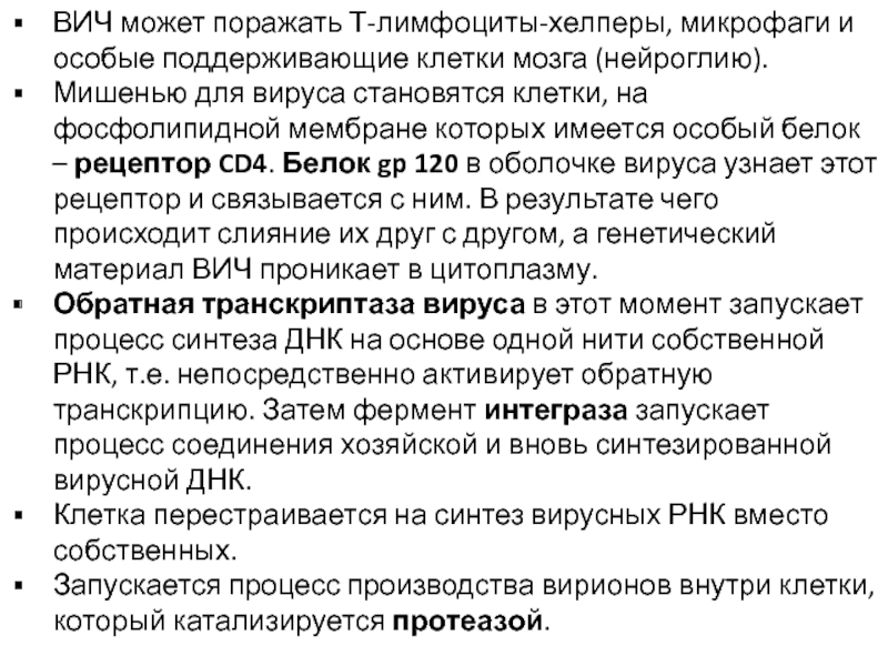 Слайд 37ВИЧ может поражать Т-лимфоциты-хелперы, микрофаги и особые поддерживающие клетки мозга
