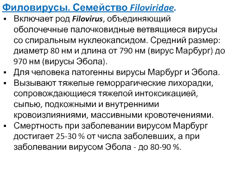 Слайд 31Филовирусы. Семейство Filoviridae.