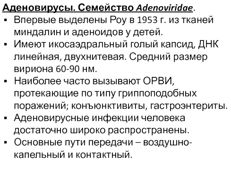 Слайд 17Аденовирусы. Семейство Adenoviridae.