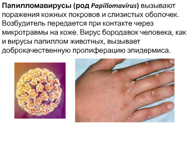 Слайд 16Папилломавирусы (род Papillomavirus) вызывают поражения кожных покровов и слизистых оболочек.