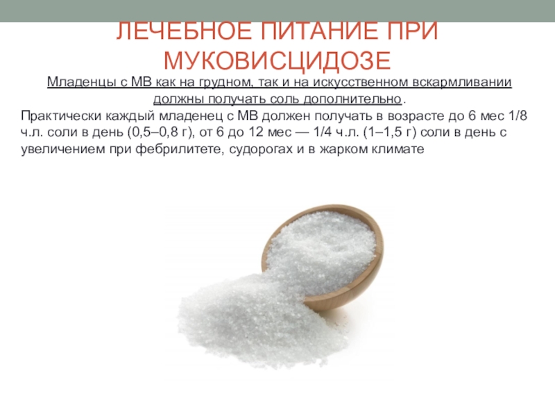 Слайд 28ЛЕЧЕБНОЕ ПИТАНИЕ ПРИ МУКОВИСЦИДОЗЕ