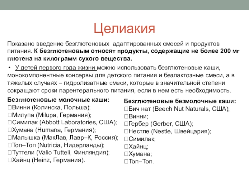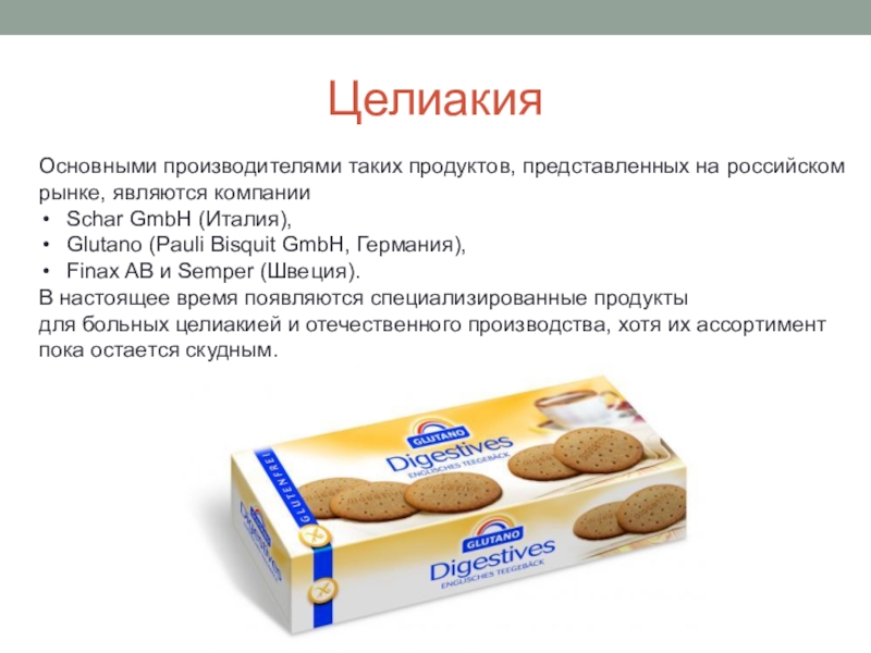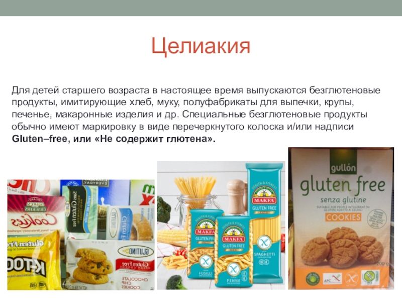 для больных целиакией и отечественного производства, хотя их ассортимент пока остается скудным.