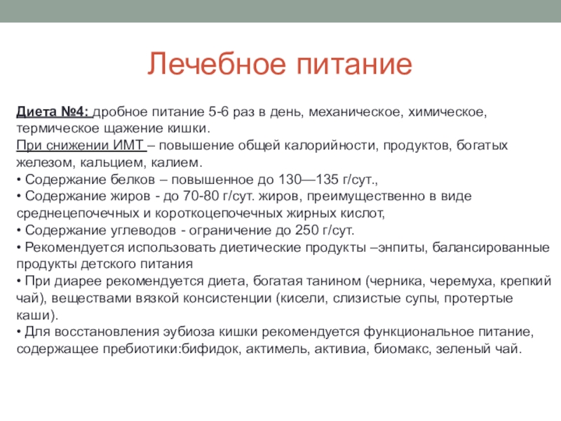 железы и почек, лимитирующее количество белков и жиров в пище;