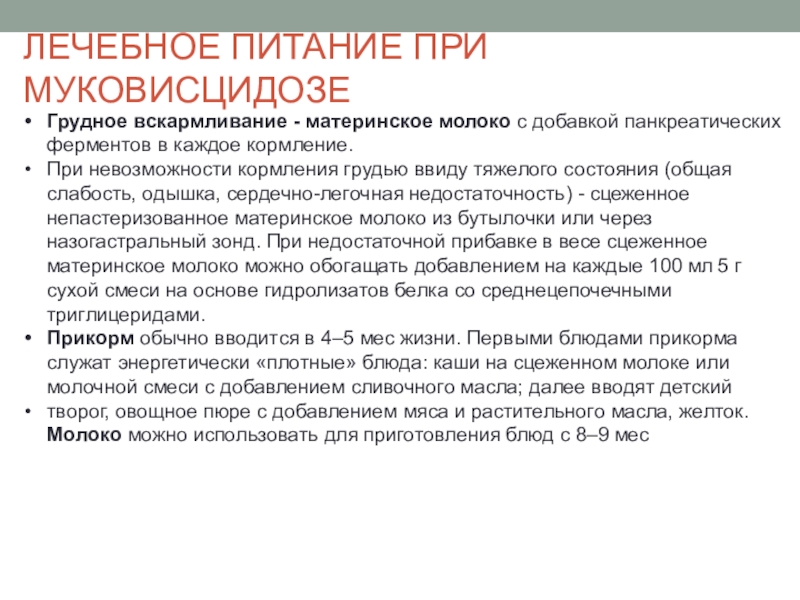 Слайд 29ЛЕЧЕБНОЕ ПИТАНИЕ ПРИ МУКОВИСЦИДОЗЕ