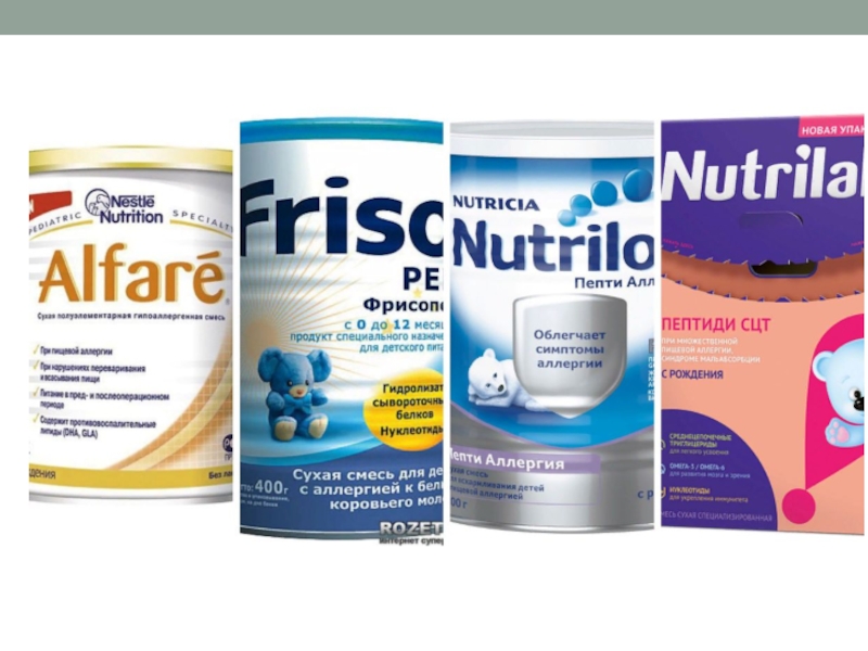 смеси на основе изолята соевого белка , их более целесообразно применять при вторичной ЛН, осложняющей аллергию к белкам коровьего молока, у детей второго полугодия жизни.