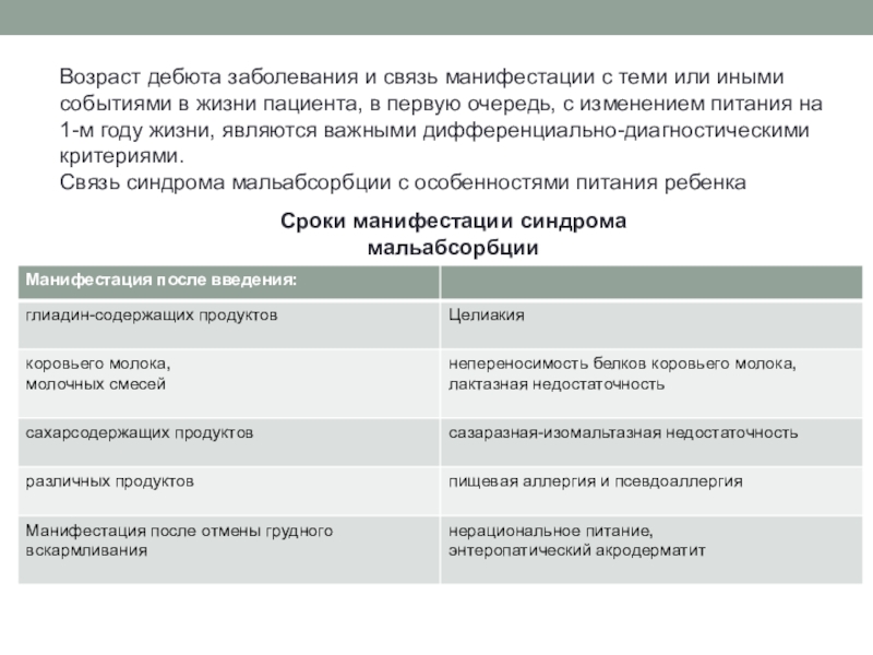 Слайд 6Возраст дебюта заболевания и связь манифестации с теми или иными